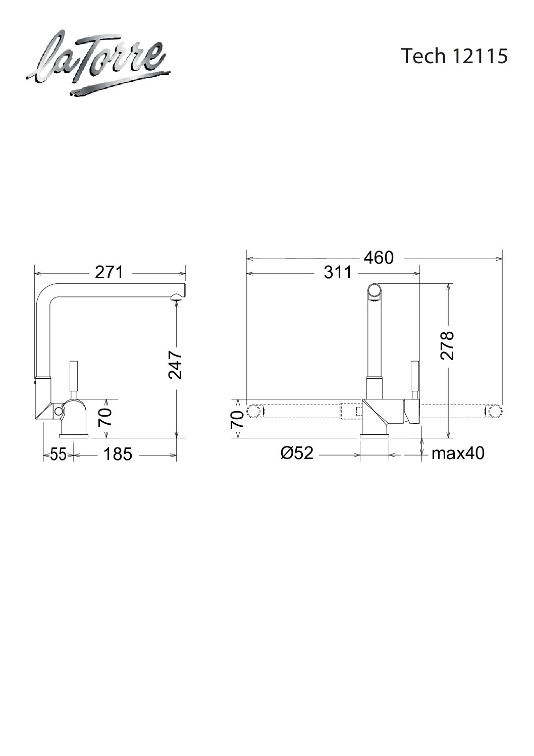 - Μπαταρία κουζίνας με περιστρεφόμενο / Ανακλινόμενο ρουξούνι για χρήση παραθύρου. Ελάχιστο ύψος : 7εκ.