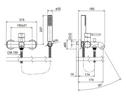 - Μπαταρία λουτρού. Περιλαμβάνει : Τηλέφωνο, επίτοιχο αναπαυτήριο τηλεφώνου και μεταλλικό σπιράλ 1,5μ.