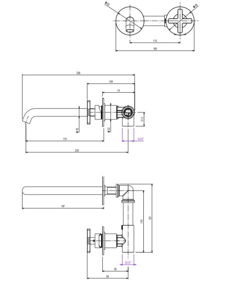 - Μπαταρία νιπτήρος εντοιχισμού .