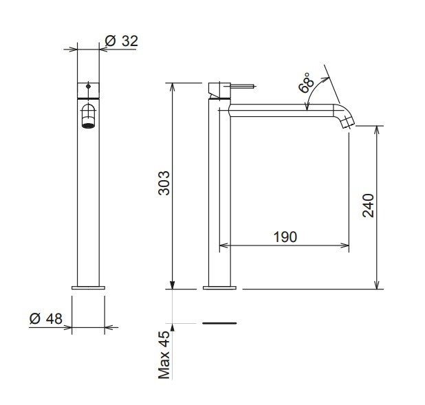 Μπαταρία Νιπτήρος Υψηλή COSMO 316L Inox Brushed 6113-111 CORA