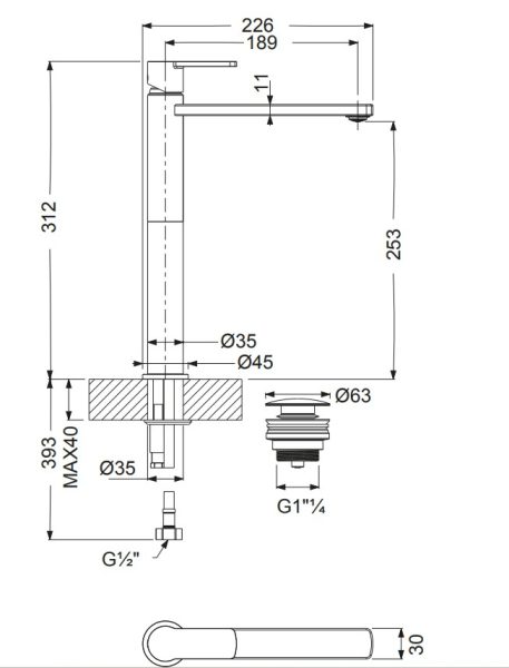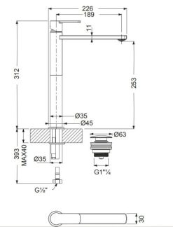 - Μπαταρία νιπτήρος υψηλή με βαλβίδα clic-clac.