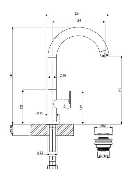 - Μπαταρία νιπτήρος υψηλή με βαλβίδα clic clac .