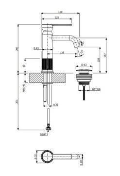 Μπαταρία Νιπτήρος LUMIERE Black Brushed 516010-410 ARMANDO VICARIO